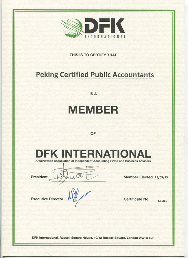 本所于2015年5月25日与DFK国际会计组织(英文全称:DFK International )签署协议,正式成为其成员所。